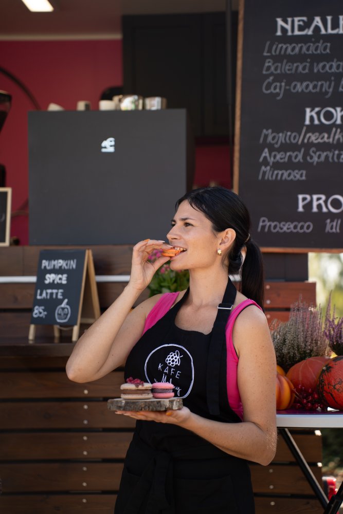 Jmenuji se Veronika a jsem máma na mateřské dovolené, která miluje kávu a peče makronky. Moje cesta začala s coffee truckem „Kafe u Maliny“, který si po úspěšné sezóně získal srdce mnoha zákazníků. Moje cesta ale nekončí. Toužím po místě, kde vůně čerstvě pražené kávy se snoubí s vůní domácích makronek, a tak krok za krokem se pouštím do budování makronkové výrobny s prodejnou. Věřím, že každý šálek kávy a každá makronka Vám vykouzlí úsměv na tváři. Přidejte se ke mně na této sladké cestě!